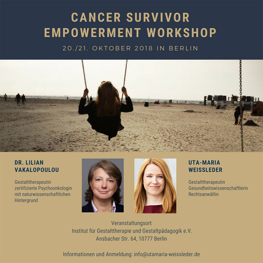 Ich freue mich, im Oktober einen gestalttherapeutischen Cancer Survivor Empowerment Workshop gemeinsam mit meiner Gestalt-Kollegin Dr. Lilian Vakalopoulou in Berlin anbieten zu können.