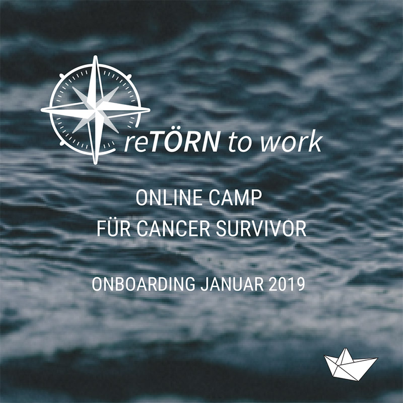 Im Januar 2019 startet reTÖRN to work mit einem Onlineprogramm für Cancer Survivor, das Hilfestellung über einen Zeitraum von sechs Monaten bietet – mit Webinaren, Online Workshops, begleitendem Email-Coachingprogramm, optionalem Online-Einzelcoaching sowie der Möglichkeit, sich online in einer Kleingruppe während des Rückkehrprozesses intensiv mit anderen Krebsbetroffenen auszutauschen.